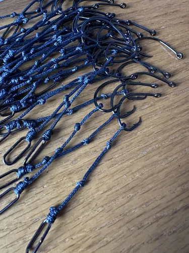One of the additional tweaks I’ve made is switching to an ultra-heavy braided line for the dongle itself — 500lb breaking strain. This might sound excessive, but the thickness of the braid means that pushing the hook through causes minimal damage to the dongle line. Despite the thickness, it's still incredibly strong at the crucial point of contact with the hook and doesn’t affect bait presentation in any negative way.